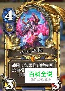卡扎库斯药水的生命力和攻击力,但是可以创建一个自定义法术。打出卡扎库斯后,一个类似于发现的界面出现,一共有三个选择。第一个是选择创建的法术的费用,然后俩个是法术的效果。费用一共有三种: 一费,五费,和十费。 法术的效果会因为费用的大小而变化,但是变化的幅度可能没有你想的那么大。 五费法术的强度一般是一费法术的两倍,十费法术是一费的三倍。这只是一个大约的估算,每个法术的强度变化都不太一样,但差不多就是这样。法术的效果永远会以一个对玩家有利的顺序触发,而不是以你选择的顺序触发。比如你先选了一个亡灵腐液,然后你在选了一个神秘羊毛,并不会先复活然后全场变羊,而是会先变羊再复活。虽然这样让它的可能出现的组合变少了,但是会让它综合效果变强