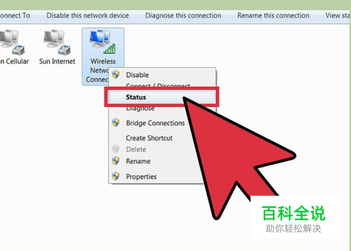 右击无线适配器。它可能被标注为“Wi-Fi”,或生产商的名字。从菜单中选择“状态”(Status)。