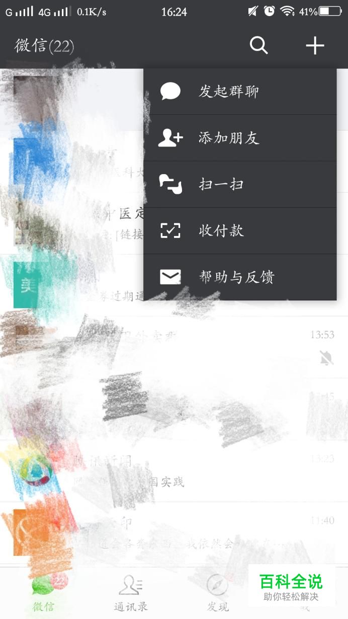 首先打开微信的页面。在右上角有一个“+”