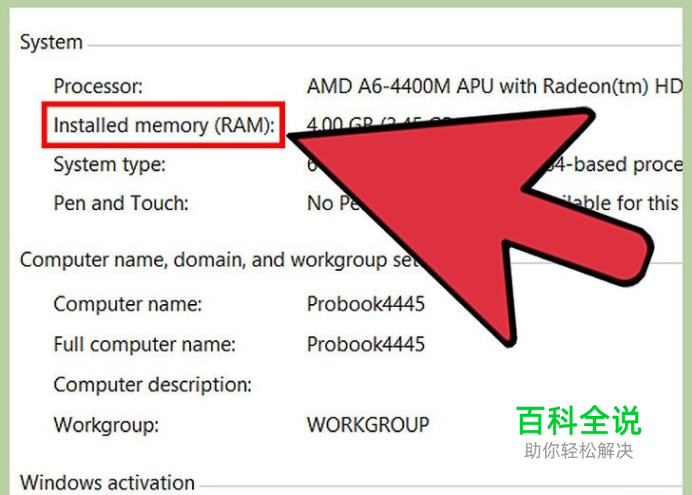 找到“安装内存(RAM)”一项。它会告知你已安装的内存大小,以及被Windows识别的可用内存的大小。 注意:“安装内存”容量下方的“可用容量”一项。由于计算机硬件会保留部分内存供自己使用,导致 Windows 无法使用这部分内存,因此 Windows 的可用内存量会小于安装内存量。例如,当你安装了8 GB大小的内存,而Windows只能识别和使用最多7.88 GB的可用内存。