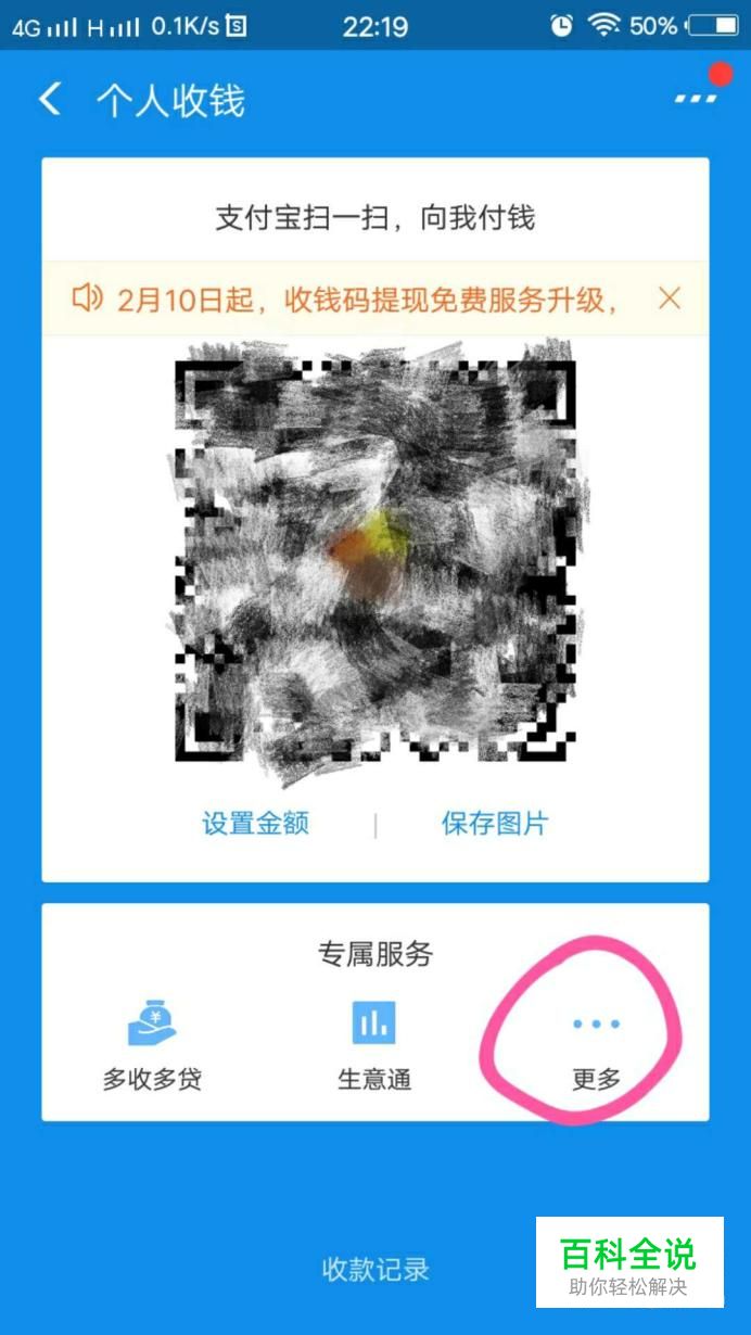 在个人收钱页面点击“更多”。