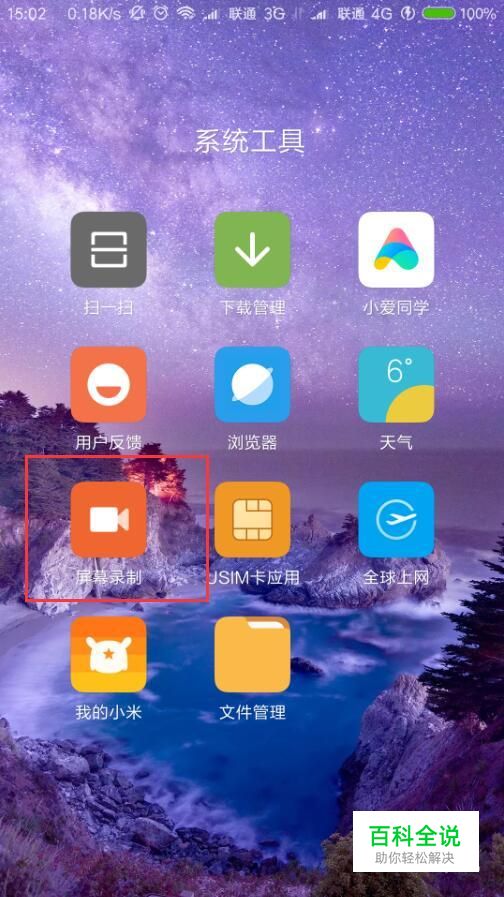 首先,在MIUI系统桌面上,点击“屏幕录制”应用图标,进入屏幕录制功能页面。