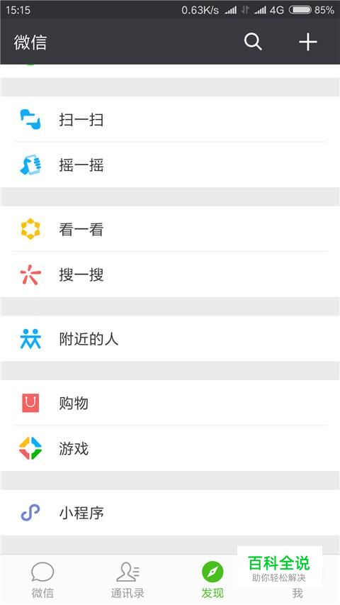 首先我们登录微信,然后我们可以看到下方有四个字样,我们找到发现这两个字,并点击。