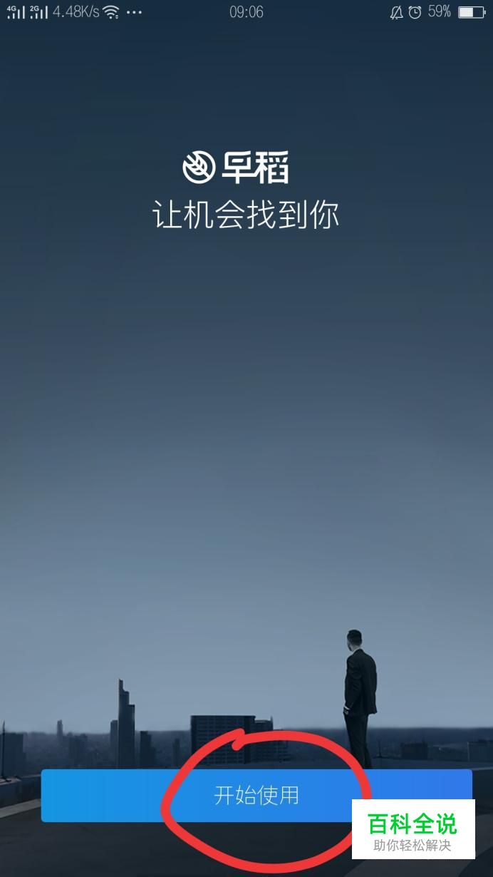 在手机上下载早稻APP 应用,然后点击打开软件,找到“开始使用”选项。