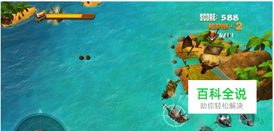 看到图中的小岛屿么,就是我们要守护的地方,上面有个金宝箱,需要守护,敌人是来偷取金子的。左上方的条代表你的金子还有多少,这组图的第三章就是被那艘 小船偷走了一些金子,所以宝箱的条少了一块,然后击沉那艘船就能把金子夺取回来。左下角是操控船的行进的,右下角是开炮,然后还有四种特殊武器。右上角有 得分,分数加成,注意哦,你的战舰被击沉了,是会复活的,然后最下面的是地方海盗总数量和剩余数量。当然,最后也会说即将到来的是一大波僵尸,啊,不对, 是一大波海盗。第二幅图和第三幅图都有一个带星星的绿箱子,是击沉地方战舰的的奖励。