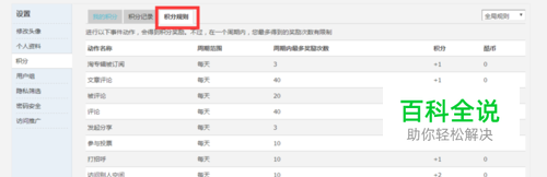点击“积分规则”可以看到怎样的行为会得到积分奖励。