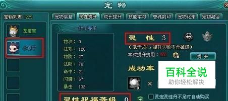 提升灵性 提升灵性灵宠初始灵性为0,可以通过灵性提升增加。灵性一共20级,每级按固定百分比增加灵宠的战斗属性,灵性成功提升后属性值会自动补全。灵性每次提升,无论成功或失败,都可以增加一定的灵性祝福值,当当前灵性等级低于祝福值等级时,可以消耗20%的祝福值将等级回复到祝福值的等级。