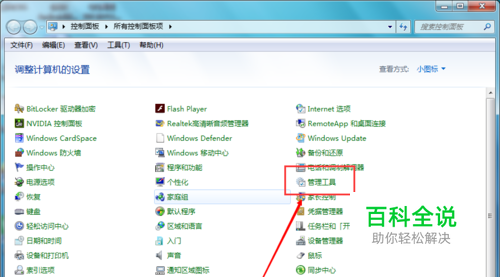 在弹出的控制面板对话框中选择“管理工具”选项,双击它