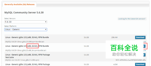 下载MySQL的Linux版本 注意:下载好的MySQL你需要上传到Linux上才行,同时使用tar -xvf 压缩文件名解压