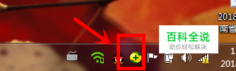 如果我们电脑上有安转该软件,那么在我们电脑的右下方就会看到该软件图标,我们移动鼠标至该图标并右键单击;
