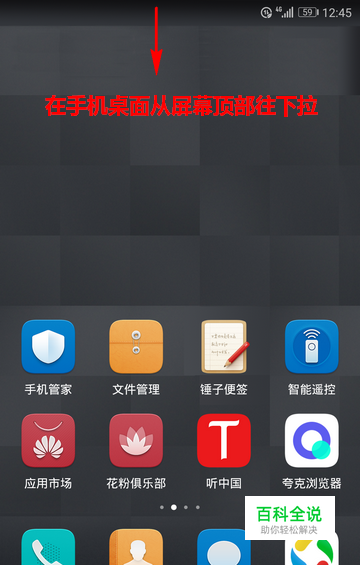 首先,在手机桌面从屏幕顶部往下拉,以便调出通知栏。