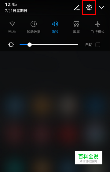 调出通知栏以后,点击通知栏右上角的设置图标。