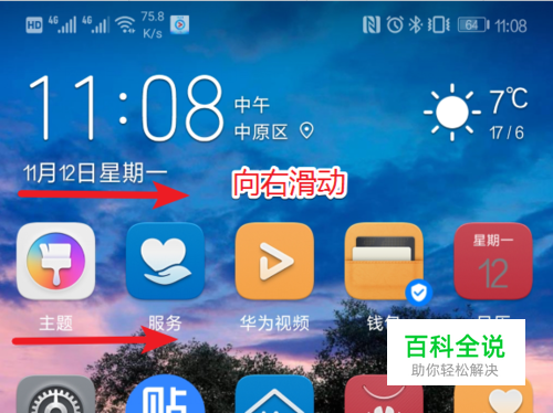 我们解锁自己的华为mate20 Pro手机后,在手机主界面向右滑动,到手机的负一屏。