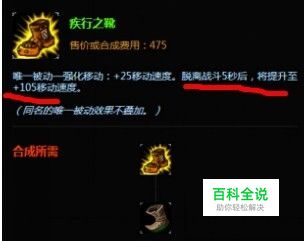 疾行之靴,俗称五速鞋,这双鞋子因为机动性很高,所以英雄打野几乎都首推游戏前期出这双鞋子。