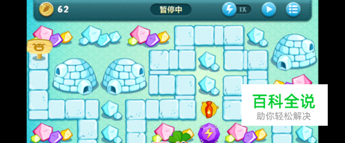 升级萝卜后,开始打最上方的冰块,然后打旁边的宝石。
