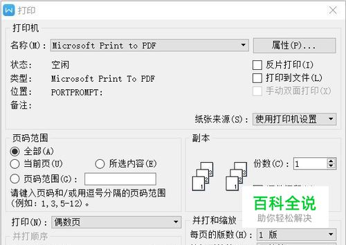 在打印页面内,我们可以看到页码范围以及打印选项。
