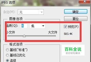 我们可以设置图像的品质高低,品质越高图像占内存就会越大。所以,要想把图片变小一点,那就降低图片品质就可以了。