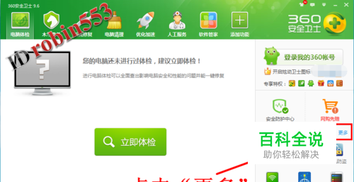 将U盘插入电脑,备份U盘中的重要文件。打开60安全卫士软件,然后点击右侧功能大全旁的“ 更多”。