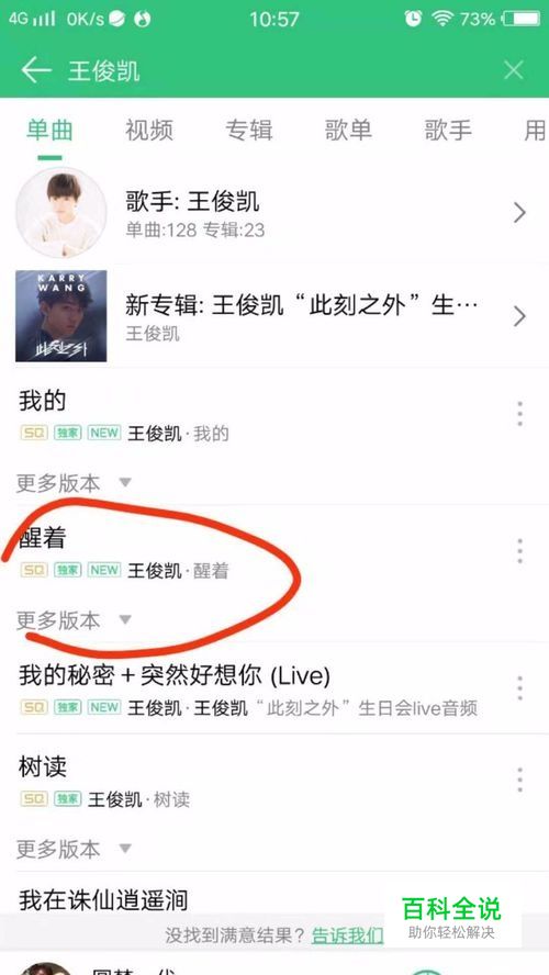 例如我要找王俊凯的醒着,可以直接输入醒着,也可以输入王俊凯,从王俊凯的歌曲列表来找这首歌