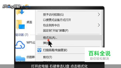 打开此电脑,右键点击U盘,点击格式化。