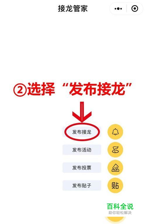 选择“发布接龙”,偷偷告诉你,接龙管家不仅仅可以发接龙哦,“活动”“投票”“帖子”都可以使用哦~