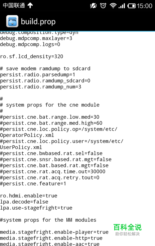 然后在目录/SYSTEM/可找到build.prop文件,长按选择使用“文本方式编辑”即可修改。
