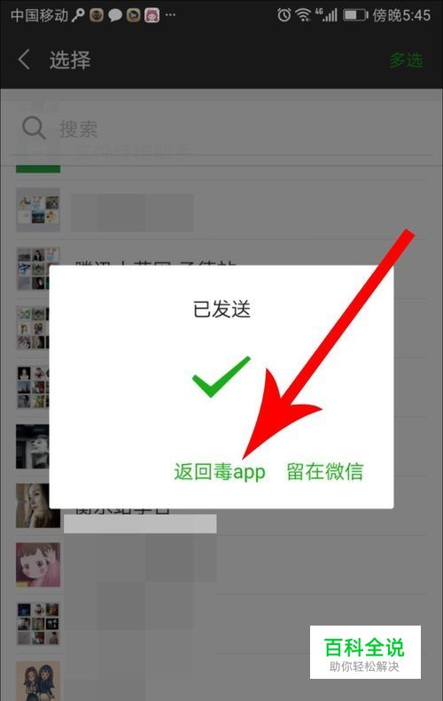 这时,微信会提示将此邀请信息发送给该好友,点击弹窗中的“分享”后,点击“返回毒app”
