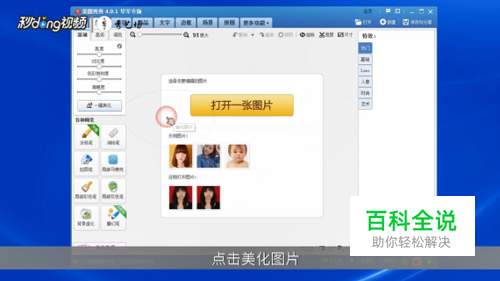 首先打开美图秀秀,点击美化图片,打开一张正脸照