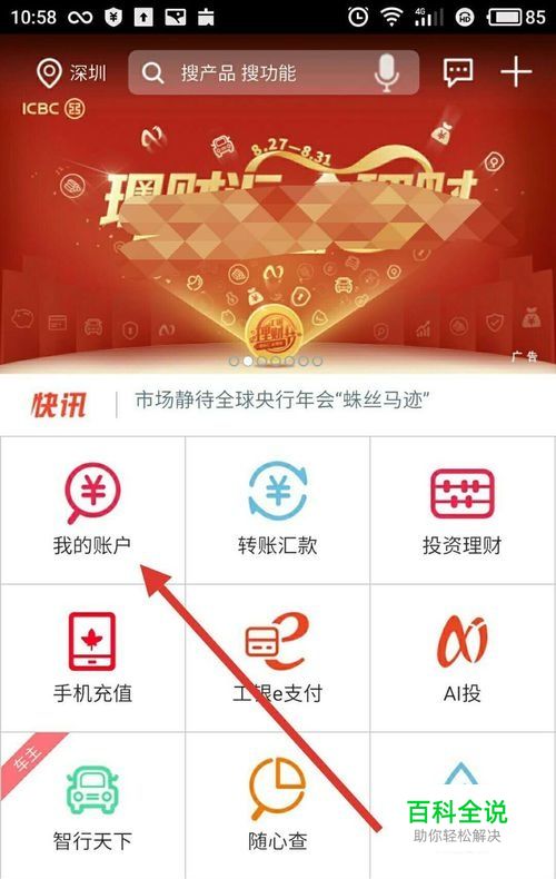 打开工商银行手机APP,进入主页后,点击“我的账户”