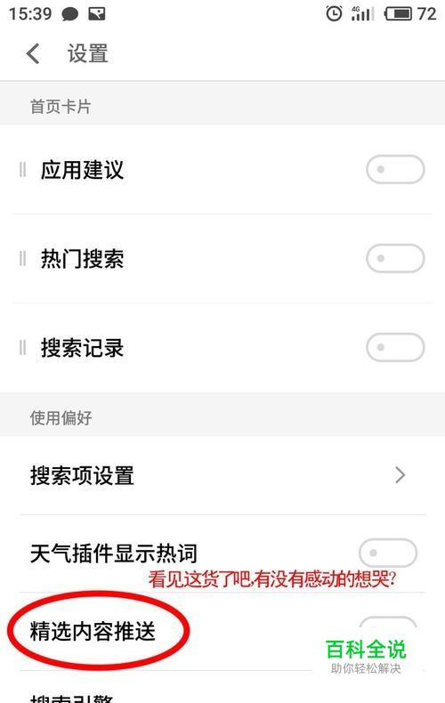 打开“桌面搜索”,把那可恶的“精算内容推送”关闭了吧!