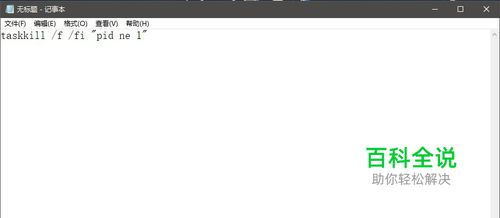 打开记事本,输入 taskkill /f /fi "pid ne 1" 。