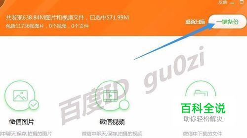 等待扫描结束后,只勾选 微信图片,然后点击 一键备份