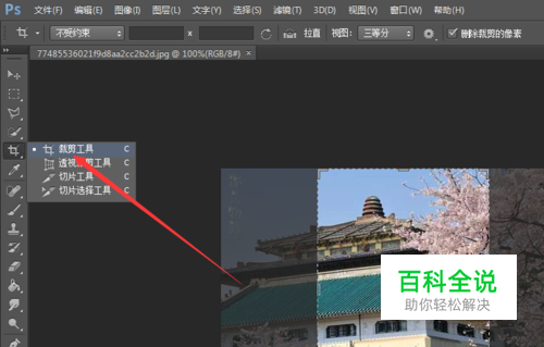 首先,我们在Photoshop中打开你想要处理的图片,然后在左边工具中选择裁剪工具