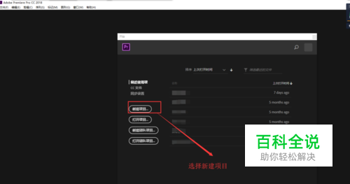 启动打开PR视频剪辑软件,选择新建项目,打开新建项目选项设置窗口,给当前这个视频剪辑PR项目命一个名字,并选择一个电脑位置进行保存,其他设置可以保持默认,然后点击确定进行创建。