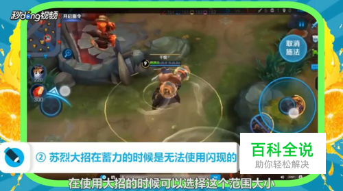 苏烈的大招蓄力是有一个范围的,使用大招的时候可以选择这个范围大小,可以看到在蓄力的时候不能使用闪现,闪现需要等到蓄力时间结束之后才行。