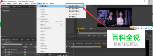 如图,依次点击【字幕】,【新建字幕】,【默认静态字幕】。