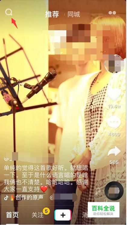 首先我们打开抖音后先点击左上角的搜索图标功能。
