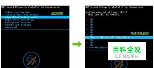 1、首先选择- wipe data/factory reset 清除数据 2、然后在选择- yes -- delete all user data 确定清除