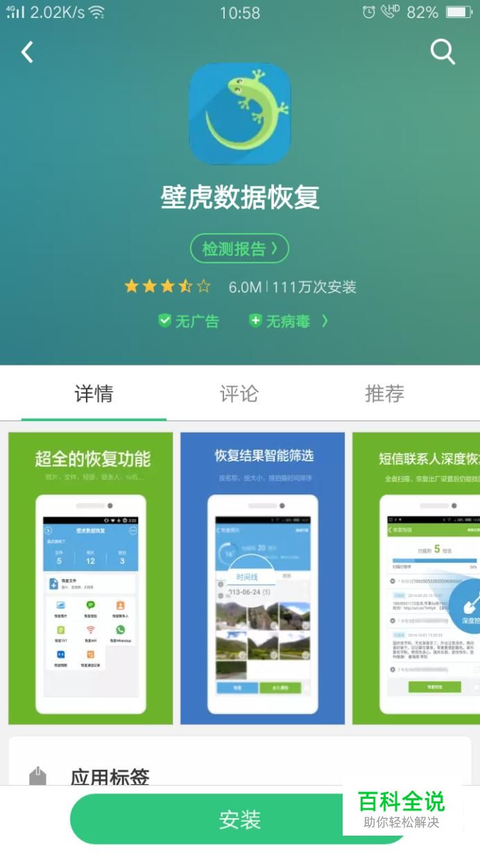 在搜索框中输入“壁虎数据恢复”,点击搜索进行安装。