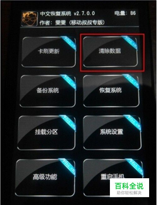 进入recovery后,选择【清除数据】,然后滑动清除数据