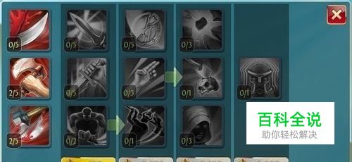 【斗士天赋】 第一列 锋利0/5:提升提升1/2/3/4/5点物理攻击。 飓风0/5:攻击速度提升1%/2%/3%/4%/5%。 重击0/5:暴击率提升1%/2%/3%/4%/5%。 第二列 敏锐0/5:每级提升0.15点物理攻击。 精通0/5:每级攻击速度提升0.15%。 碾压0/5:普通攻击对士兵和野怪造成2点额外伤害。 第三列 破甲0/5:忽略掉敌方2.5点物理防御。 洞悉弱点0/:每级暴击率提升0.3。 暴怒秒杀0/1:普通攻击有5%的几率直接秒杀一名士兵。 第四列 碎裂0/3:普通攻击能对建筑物造成2%/4%/6%的物理伤害。 致命伤害0/1:增加10%的暴击伤害。 生命虹吸0/3:普通攻击将吸取敌人3%/6%/9%的生命值。 第五列 撕咬0/1:普通攻击将造成相当于敌人生命值上限1%的额外伤害。