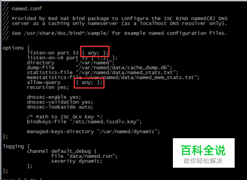 配置bind的主配置文档/etc/namd.conf,将127.0.0.1修改为any