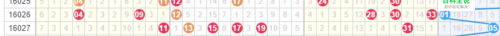 我们再按以上杀号方法杀16027期的号码,杀掉的号码为02、28、12、04、17、21、13、20、16、13、20、18、28、12、23,共杀掉15个号码,14个正确。结果第16027期开奖结果为11、13、15、17、19、31+05,杀号成功。
