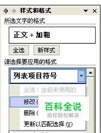 Step2 在样式窗格中,右击“列表项目符号”,选择“修改→格式”(见图1)。在弹出的修改样式对话框中,单击“格式→编号”。