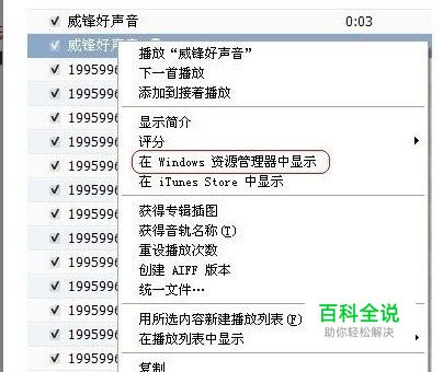 然后你就会听到 一个三全音 的声音 说明成功创建了AIFF版本 然后你会看到你之前那首歌曲下面新出来一首 一模一样的AIFF版本的铃声,选择第二个铃声右键单机它。