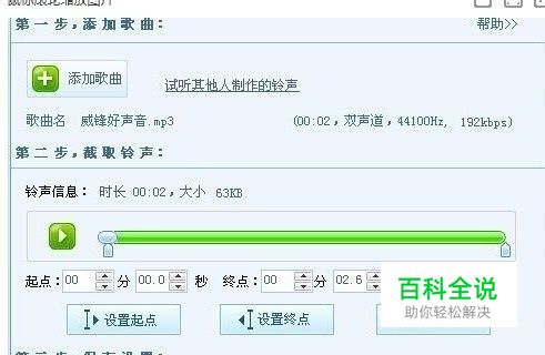 首先大家可以用酷狗铃声制作 剪裁 5秒左右的 最好是 2 秒 的铃声(随便什么歌曲)!