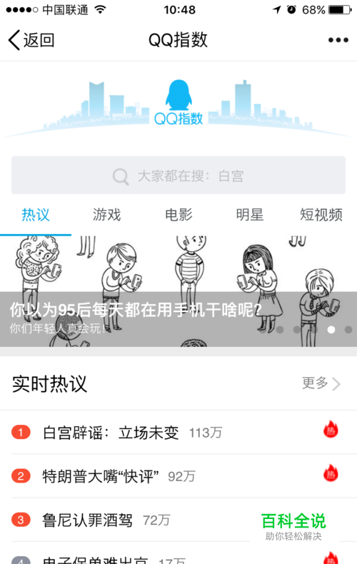 特别的,“QQ指数”还提供了各类榜单,如,热议、游戏、电影、明星、短视频:1)榜单中的话题/图标均可点击,对应查询到的是其指数和画像;2)95后正在说,该模块可以通过点击右上角“换一换”来实时查询最新用户观点,用户观点中的标蓝关键词也可点击哦,赶快试试吧! 另,热议页面下方的“发现更多”模块,还有更多有价值的数据分析报告,欢迎围观,会有意想不到的惊喜哦!