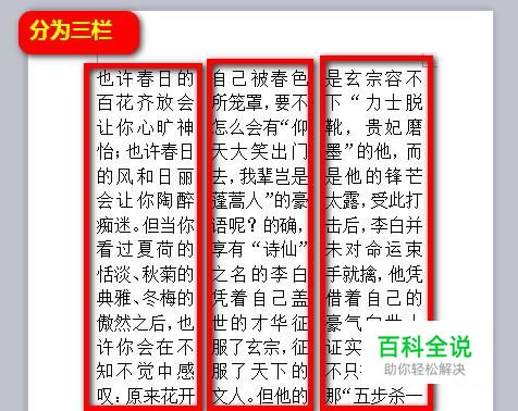 随即,内容分为两栏显示。同理,若想要三栏显示,那么,选择“三栏”即可。
