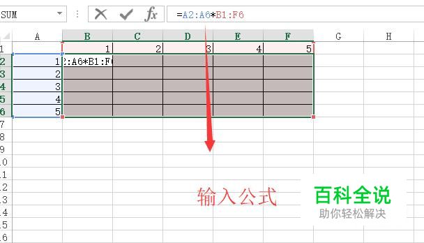 然后我们选中数据表的空白区域,输入如下图所示的数组公式