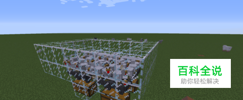 之后打碎玻璃 将箱子放在漏斗下面 用玻璃堆起两层高的围墙 然后可以扩大规模 在里面放鸡就行了